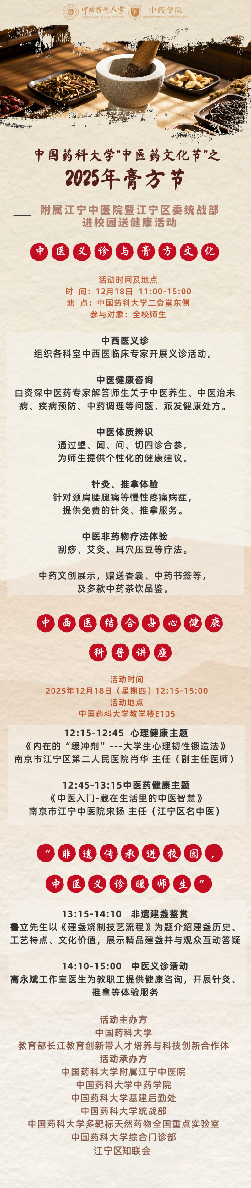 中国药科大学“中医药文化节”之 2025膏方节——附属江宁中医院暨江宁区委统战部进校园送健康活动
