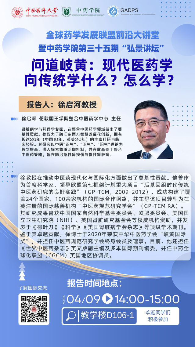 中药学院第三十五期“弘景讲坛”:伦敦国王学院徐启河教授讲座报告