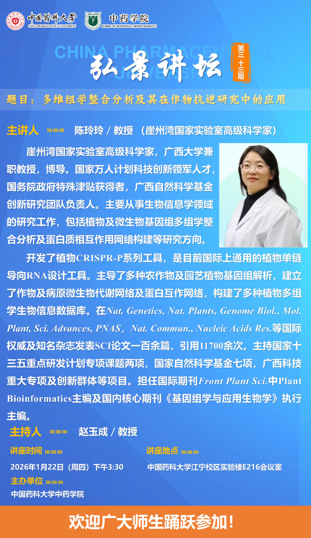 中药学院第三十三期“弘景讲坛”:崖州湾国家实验室陈玲玲教授作学术报告